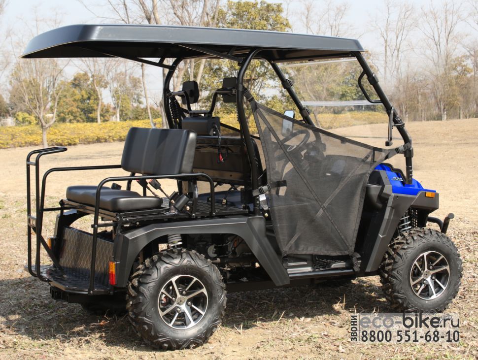 Одной из важных особенностей этого автомобиля - преобразование из UTV в гольфкар. В нем предусмотрена возможность установки заднего ряда сидений и длинной крыши, вместо заднего багажника и короткой крышей. Причем можно как купить дополнительный комплект задних сидений за 50 тыс рублей, так и заменить грузовой комплект на задние сидения на грузовой отсек БЕСПЛАТНО!